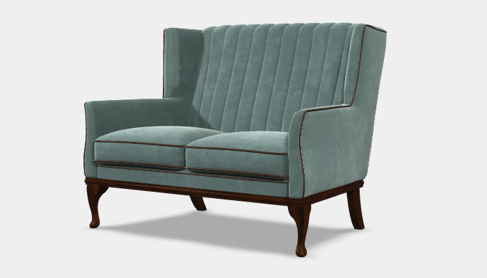 Wood Bros Blakeney 2 Seater Sofa The Wood Bros Blakeney two seater sofa features a comfortable sit from the deep channel back design. Available in an extensive range of beautiful fabrics, optional soft leather custom piping trim and legs in a selection of wood finishes.