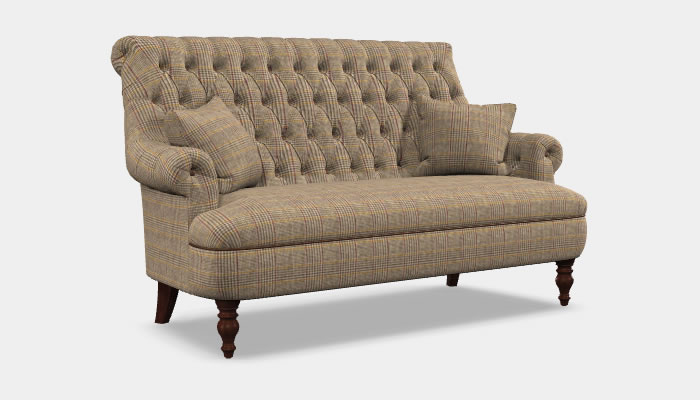 This Wood Bros Pickering three seater sofa features a distinctive silhouette with its stunning tailored design, flowing scroll arms and pleating rounded off buttoning. The sofa offers plenty of support with its sprung high back and the sprung domed seat provides a super comfy sit. Available in an extensive range of beautiful fabrics, optional soft leather custom piping and button trim, the legs are available in a selection of wood finishes. The Wood Bros Pickering full range includes an armchair, two seater and three seater sofas in both fabric and leather.