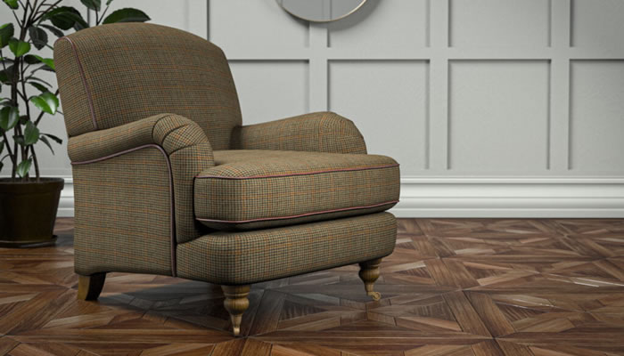 Wood Bros Langton Armchair The Wood Bros Langton armchair is a delightful chair which features a traditional English roll arm shape and a relaxed and comfortable sit. Available in an extensive range of beautiful fabrics, optional soft leather custom piping trim and legs in a selection of wood finishes.