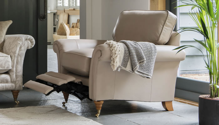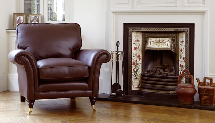 The Parker Knoll Burghley Leather Grand Sofa with 2 scatters features a stylish scroll arm and beautifully tailored back cushion.