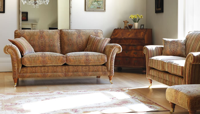 Parker Knoll Burghley 2 Seater Sofa The Parker Knoll Burghley 2 Seater Sofa features a stylish scroll arm, beautifully tailored back cushion, 2 scatters and a large selection of luxury fabrics to choose from.