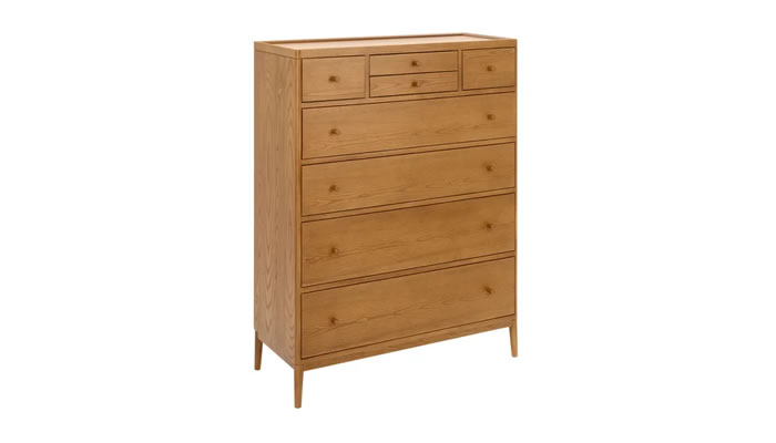 The ercol Salina 8 drawer tall chest is full of design features. Constructed from solid ash, ash veneers and finished in vintage lacquer.