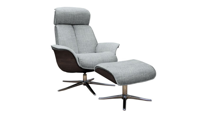 G Plan Lund Leather Chair Dark Veneered Sides & Stool The G Plan Lund Swivel Recliner Chair with veneered trim in dark wood and a free standing footstool comes with chair as standard. Choose from a matt black or brushed chrome star base and a range of beautiful G Plan leathers to suit your style.