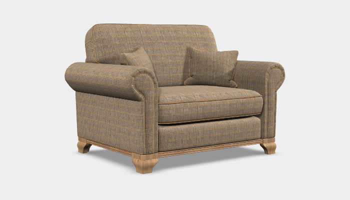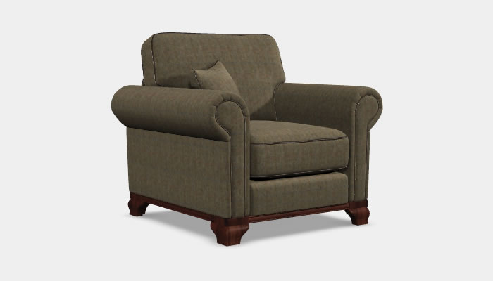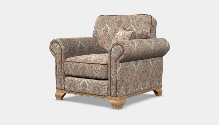Wood Bros Lavenham Armchair The Wood Bros Lavenham armchair is a traditional style chair which features generous scroll arms and a wooden plinth. Available in an extensive range of beautiful fabrics, optional soft leather custom piping trim and legs in a selection of wood finishes.
