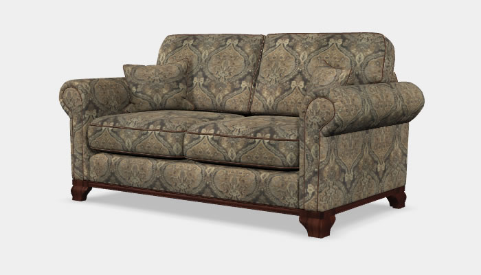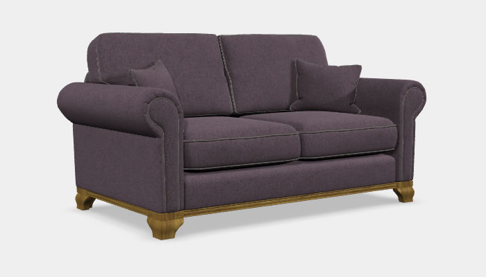 Wood Bros Lavenham Medium Sofa The Wood Bros Lavenham three seater is a traditional style medium sofa which features generous scroll arms and a wooden plinth. Available in an extensive range of beautiful fabrics, optional soft leather custom piping trim and legs in a selection of wood finishes.