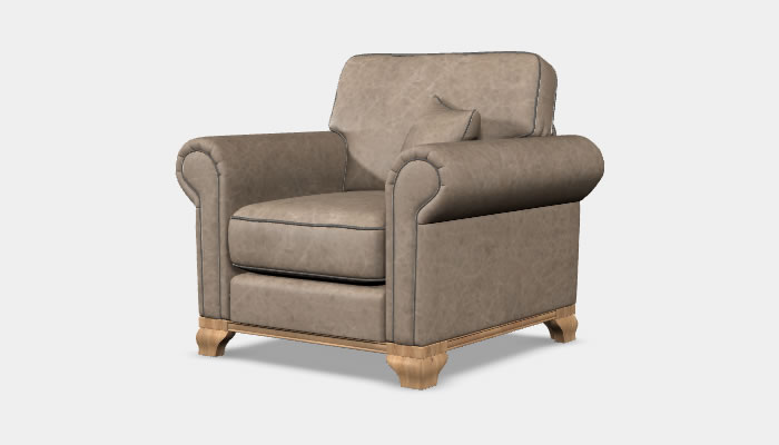 Wood Bros Lavenham Leather Armchair The Wood Bros Lavenham armchair is a traditional style chair which features generous scroll arms and a wooden plinth. Available in a range of quality leathers, optional soft leather custom piping trim and legs in a selection of wood finishes.