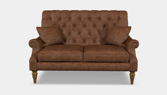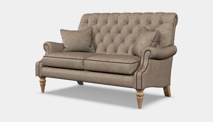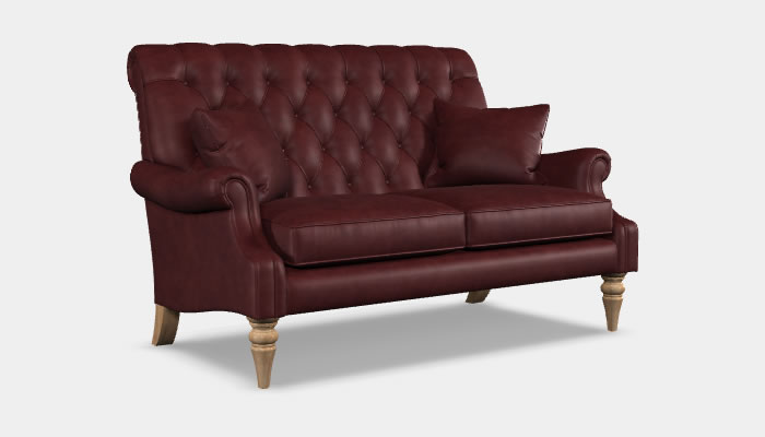 Wood Bros Dansby Leather Compact 2 Seater Sofa The Wood Bros Dansby leather two seater compact sofa is a modern comfortable and chic take on a classic style with a low buttoned back and curved arms. Available in a range of quality leathers, optional soft leather custom piping and button trim, and turned legs in a selection of wood finishes.