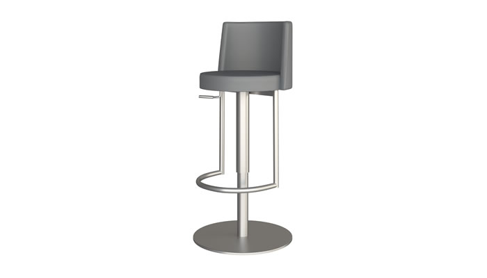 Adjustable gas action Monet Bar Stool with a brushed stainless steel frame and a comfortable PU seat in black, grey, taupe or caramel.