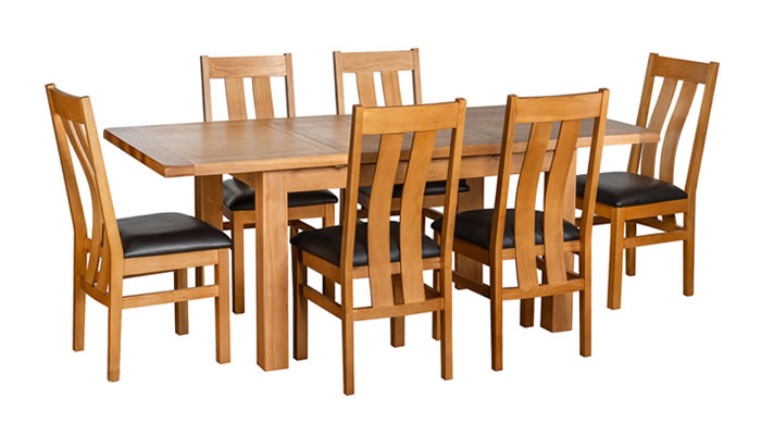 This Signature Collection Southam traditional style Dining Table With 2 Extensions is designed to comfortably seat 6 people, perfect for mealtimes and entertaining. The table can extend from 132cm to 198cm via a central runner system using two leaves which are stored internally, alternatively one leaf can be used extending to 168cm. Constructed from white oak, chunky top with softened corners, tapered legs and finished in a modern attractive wax.